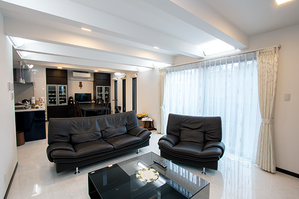 2Fリビングに開閉式の天窓を設置、そして2基のファン、居心地のいい快適LDK。